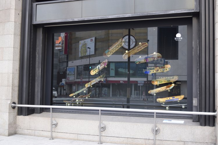 From March 29-April 17, 2016, contemporary artist, Mounir Fatmi, presented an installation in the vitrine of the famed Isetan department store in Tokyo, Japan. The installation of twelve skateboards covered in sewn fragments of Muslim prayer rugs, is part of the series of work titled, Maximum Sensation, the largest version of which is part of the permanent collection of the Brooklyn Museum. Under the services of The Vitrine, I assisted with the proposal, served as liaison between Mounir Fatmi Studio, the lead curator and the department store representatives, to oversee all logistics and communication, and assisted on shipping and presentation.